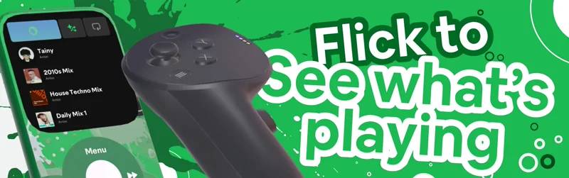 Control your Spotify® library from within VRChat. Browse playlists and select tracks using joystick controls or the VRChat menu.
